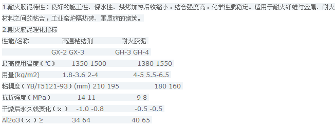 耐火胶泥的特性理化指标