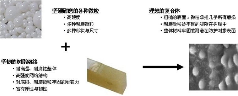 QUN-722弹性耐磨损涂层将坚硬粒子填充在坚韧的三维网络结构中,承担材料的磨损: