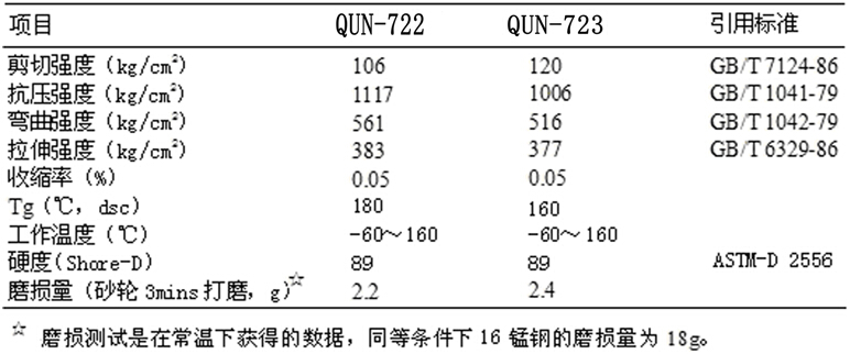 QUN-722陶瓷耐磨涂料为双组份,A,B二组份按比例混合后自行固化,固化后的材料具备力学性能: